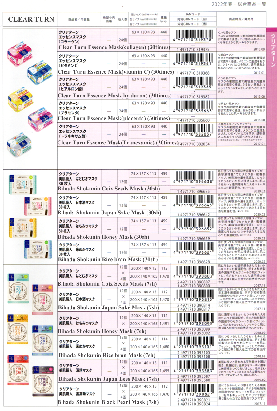 Essence Mask series, Clear Turn Bihada Shokunin Series [kc60]